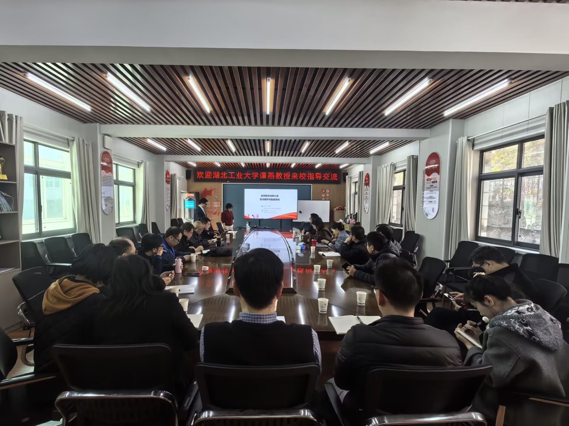 办公楼会议室1201做报告,题目为“教学创新大赛要点解析与备战攻略”。学院资深教授、系部主任、专业负责人、以及教学创新大赛参赛教师参加本次活动,本次报告由教学院长董焱章教授主持。